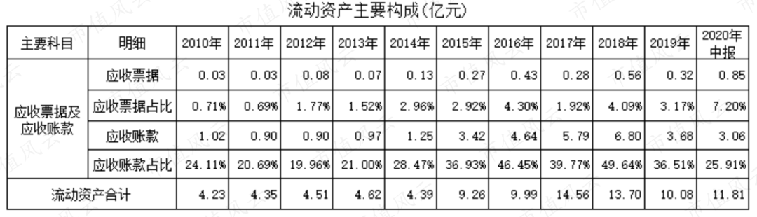 应收票据及应收账款占流动资产的比重较高,一度超过50%。其中,应收账款占比最高,收购完成鑫三力的2015-2018年,上市公司的应收账款逐年增长。