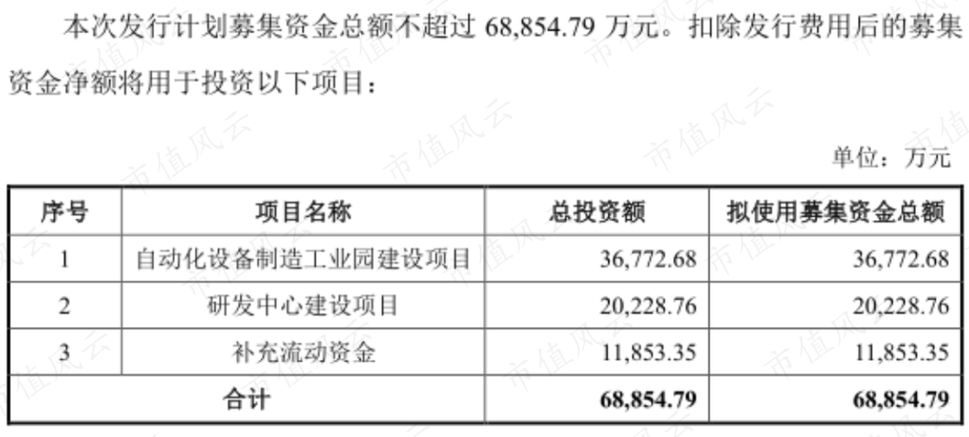 此外,2020年12月22日再次发布定增预案,拟发行股份募集不超6.89亿元,用于自动化设备制造工业园项目、研发中心建设项目以及补充流动资金。
