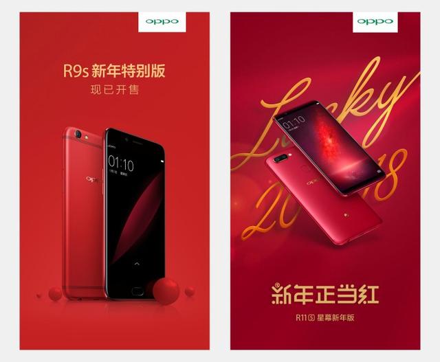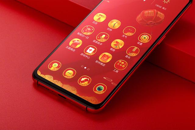 OPPO 的新年特别款在外观上多以大红色为主,点缀着烫金 LOGO,整体看上去非常喜庆,除此之外,早年间的 R 系列还会特别定制新年版的主题 UI。