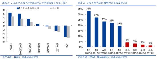 2、近期,龙头抱团的趋势更加显著,也引发市场关注。但这完全验证了我们过去3年关于机构化、价值化的研究结论,并且这一趋势才刚刚开始。1月以来,指数上涨、大市值权重股收益显著,而小市值股票持续下跌的行情特征,再度引发市场对于“抱团”持续性以及“抱团”瓦解的担忧。