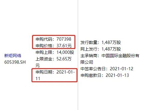 今日,1月11日,新炬网络、中英科技、通用电梯、屹通新材4只新股发行,新炬网络为沪市主板新股,中英科技、通用电梯、屹通新材均为创业板新股。这其中从一签总额来看,新炬网络值得关注。