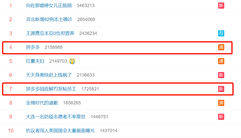 刚刚过去的2020年是拼多多突飞猛进的一年,Wind显示其2020年股价涨幅370%,最新市值2217亿美元。但近期,拼多多用工问题频频触碰公众神经,此前曾通报员工猝死事件、自杀跳楼事件,而上海市劳动保障监察部门已经对拼多多劳动用工情况展开调查。“太虚”事件再次将拼多多推上热搜。