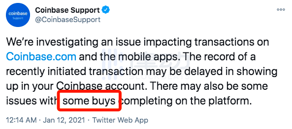 按照 Coinbase Support 官方对问题的描述,用户交易时会有延迟,尤其是当用户进行买单交易时,会出现问题。