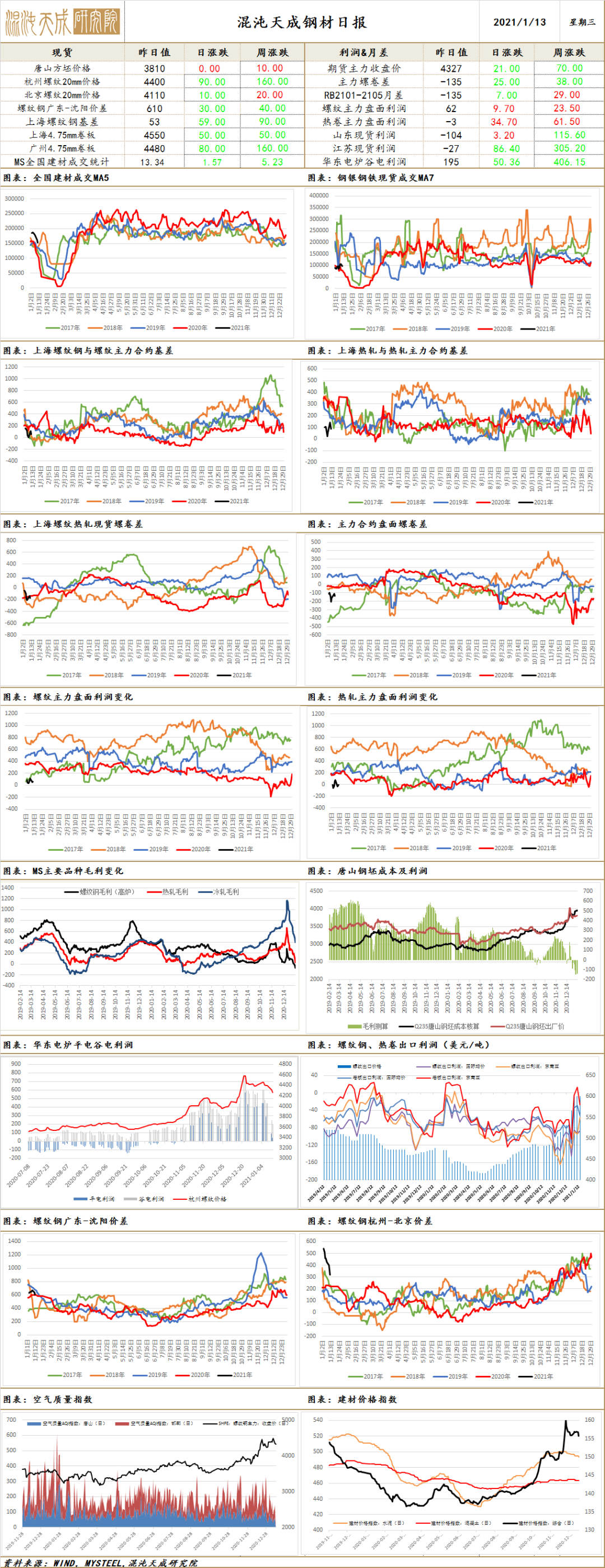 需求端,因北方疫情及降温双重影响,北方多地下游工地大部分已停工,工人陆续返乡,而南方地区随着春节临近,本周开始也将陆续进入节前放假停工阶段,市场需求明显缩量。上周五大钢材库存总量继续大幅增长,表观消费需求环比减少。周一钢银数据显示热卷库存继续大幅快速上升,显示板材下游需求也有所减弱。不过,值得注意的是,目前钢材出口利润水平依然较好,钢材出口订单放量,在国际钢材市场需求依然强劲的情况下,预计钢材出口仍可能继续表现增加。