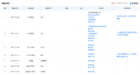 作为国内AI巨头,旷视科技向来受到资本方的青睐。天眼查数据显示,从2011年创立至2019年,旷视科技至少经历了7轮融资,融资方中不乏阿里巴巴、中银投资、麦格理这样的著名投资机构。