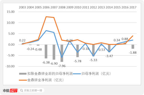 换句话说,拿走金鼎锌业,宏达股份这几年就全是亏损的。