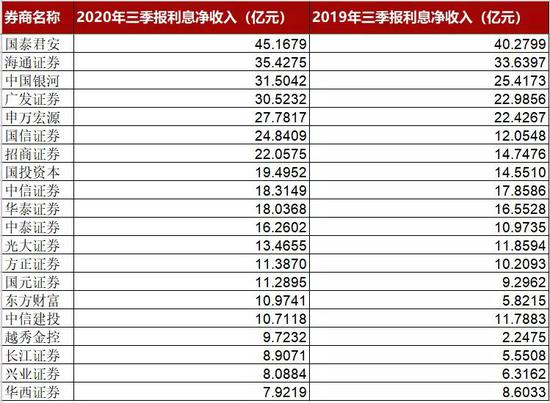 据记者了解,券商两融业务的相关收入主要记在利息净收入名下。Choice数据统计显示,截至去年前三季度,大多数在业内排名居前券商的利息净收入都实现了同比增长,其中国信证券、东方财富的同比增速接近100%。