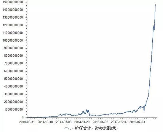 2010年以来融券余额增长曲线 数据来源:Choice数据