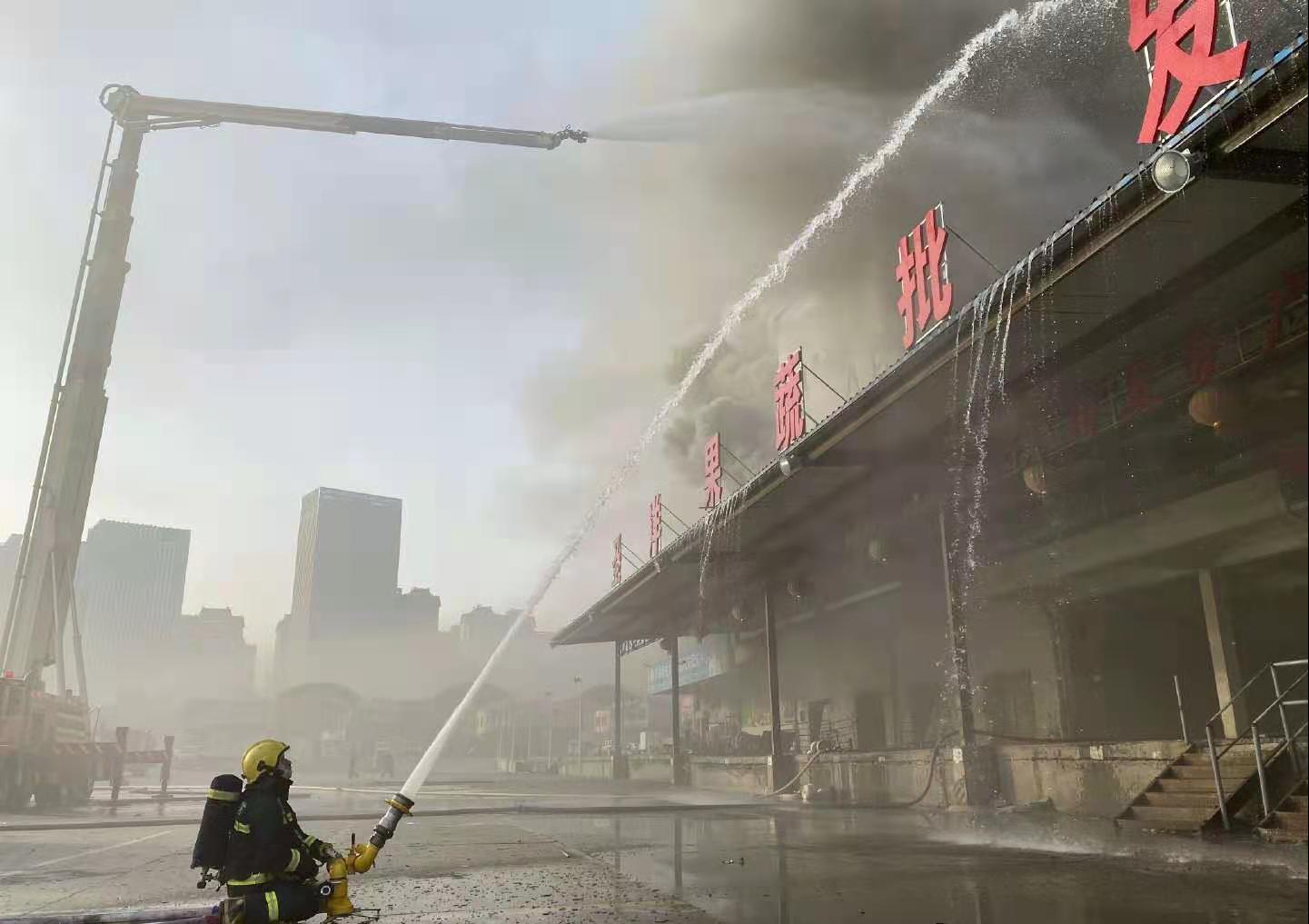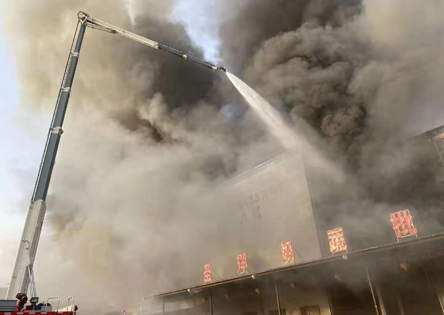山东济南姚家路银座圣洋物流副产品批发市场发生火灾 正全力扑救
