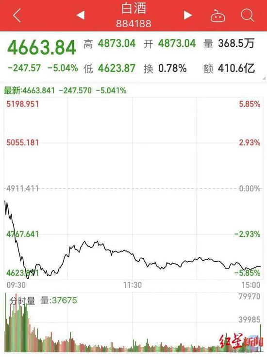 红星资本局复盘从近期白酒板块看,领跌的正是二三线白酒品种,像金徽酒、青青稞酒、金枫酒业、皇台酒业、顺鑫农业(旗下有牛栏山二锅头)等跌幅较大。不过,次龙头洋河股份(002304.SZ)、古井贡酒跌幅也不小,近期迎来持续下跌,洋河股份今日盘中差点击穿200元关口,短短5天市值就蒸发约800亿元。