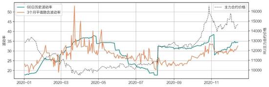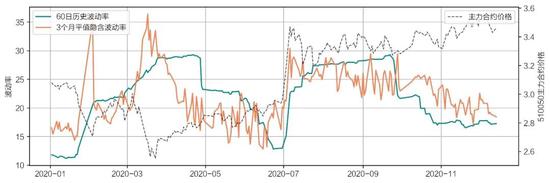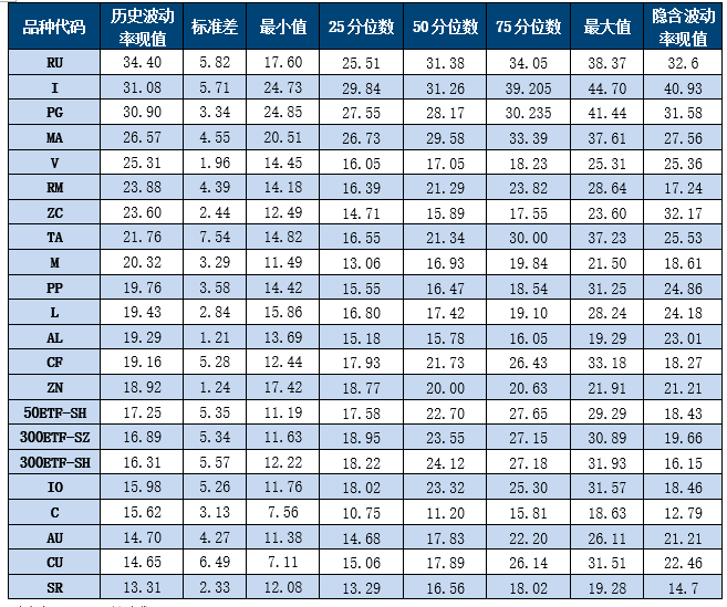 表3:期权各品种波动率统计(按历史波动率大小排名)