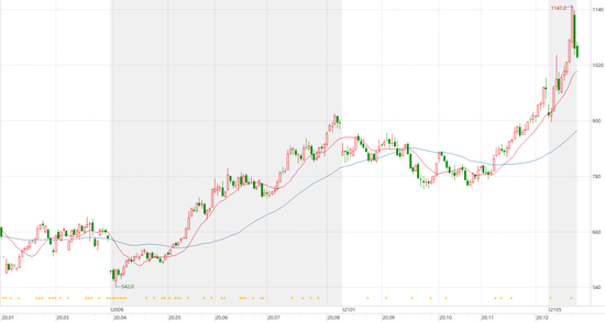 铁矿在2020年走出了比较流畅的上涨行情。得益于基本面的强势,铁矿在疫情期间表现坚挺,并随着宏观环境的回暖步入了上行轨道。在经历了三季度的震荡回调后,四季度矿价在成材消费端的带动下快速拉升。叠加中澳关系恶化的国际形势,大量资金进场炒作(澳大利亚是中国铁矿石最大进口国),铁矿价格突破1000元/吨大关。进入12月后,大商所连续发布公告,尝试通过限制持仓、交易、调整手续费等方式防止铁矿石价格异常波动,目前来看已略有成效。