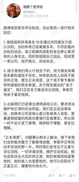 1. 林奇“未婚妻”系2019年通过朋友介绍认识,彼时林奇已离婚多年,不存在婚内出轨;