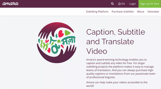 △Amara是一个提供在线翻译视频和添加字幕服务的按需平台。