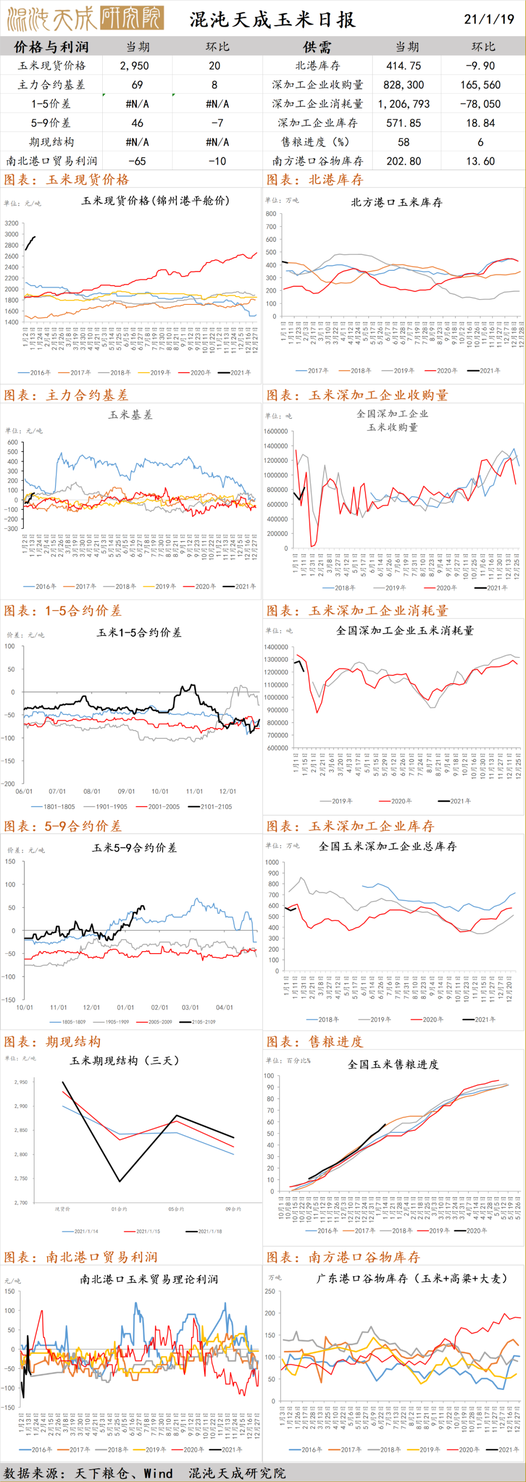 玉米:东北产区疫情比较严重,整体玉米购销比较清淡,农民卖货积极性偏弱,惜售情绪比较浓厚,下游企业补库积极性不减,玉米现货价格继续上涨,终端需求较好,期货高位横盘震荡。