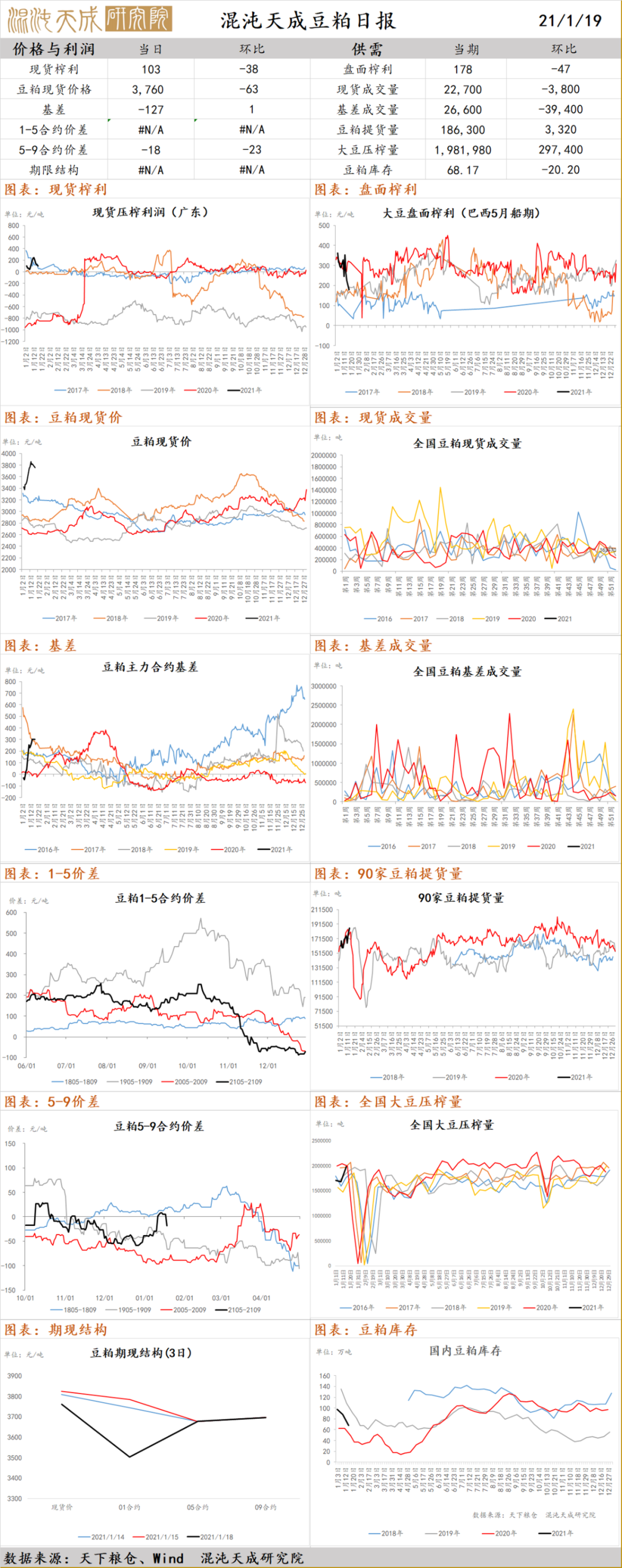 豆粕:阿根廷短期降雨良好,盘满略有回调,但1-3月份仍是阿根廷大豆关键种植季,市场对阿根廷大豆的减产仍然存在预期,加上美豆库存太低了,因此美豆易涨难跌。内盘由于生猪压栏及肉禽补栏情绪良好,加上下游应对疫情积极补库,基差暴涨,但盘面偏弱,导致进口利润缩窄,盘满暂时看不到大跌驱动。