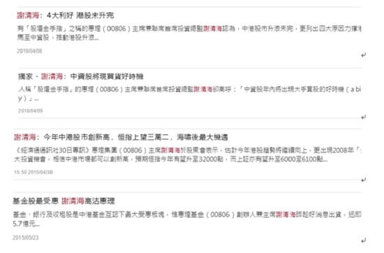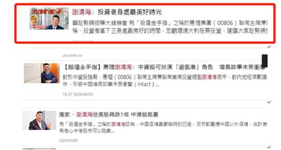 不过,有业内人士对新浪港股表示,“每次谢清海上了专访,大市都是高位,而每次分析几乎都是错”。