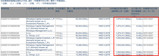 1月15日,李录再度增持8354万股,成交价5.3479港元,涉资4.47亿港元,最新持股12.74亿股,持股占比6.42%。