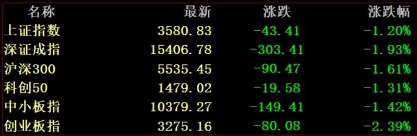 截至上午收盘,沪指跌1.20%,报收3580点;深成指跌1.93%,报收15406点;创业板指跌2.39%,报收3275点。个股跌多涨少,跌超9%个股逾40家,涨幅超9%个股不足50家,市场赚钱效应较差。