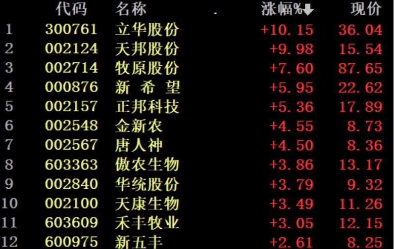 今日上午,受益牧原股份年报业绩预告大增刺激,猪肉板块强势爆发。牧原股份预计2020年实现净利润270亿元–290亿元,比上年同期增长341.58%–374.29%,基本每股收益7.34元/股–7.88元/股。