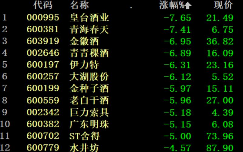 白酒概念中,皇台酒业(维权)、青海春天、金徽酒等个股跌幅居前。