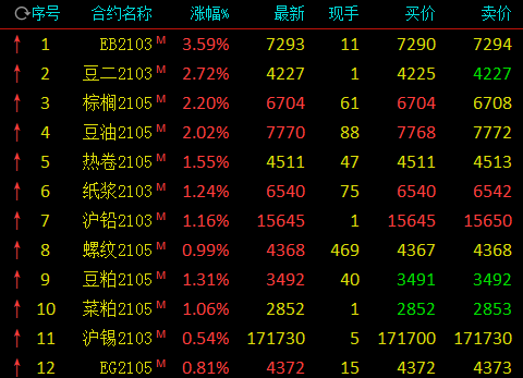 热点栏目1月27日,国内期市开盘,苯乙烯涨逾3%,豆二涨近3%,棕榈油、豆油涨逾2%。