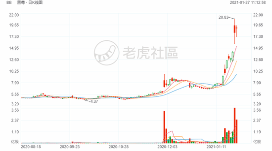 近日,黑莓股价大涨,今日涨近5%,近一个月涨约200%。