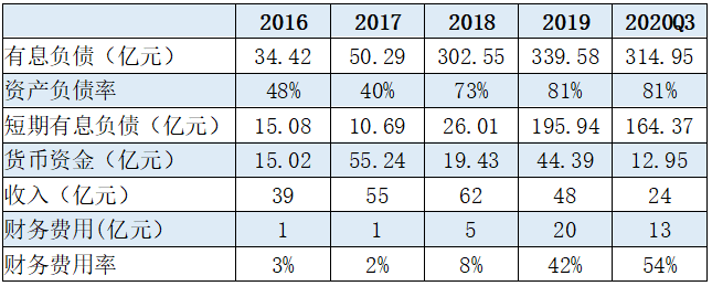 截至2020年三季末,公司短期有息负债为164.37亿元,而公司账上货币资金仅12.95亿元,偿债压力非常大。