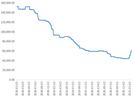 2020年磷酸铁锂电池成为销量唯一同比增长的动力电池类型,且电池级碳酸锂库存较低,导致供不应求,国内电池级碳酸锂价格持续上涨,不少企业表示订单爆满。