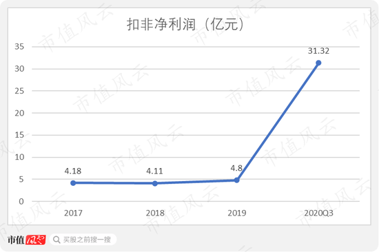 2020年前三季度的扣非净利润也因营收激增而达到31.32亿,较去年同期增长700.24%。