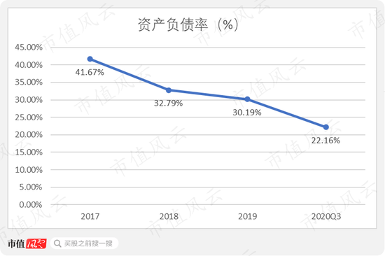 资产负债率不断下降,资产质量提高,2020年前三季度资产负债率22.16%。