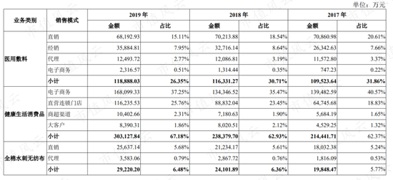 医用敷料主要通过线下渠道销售,并辅以天猫商城、京东商城等 B2C 平台的品牌旗舰店进行线上销售。