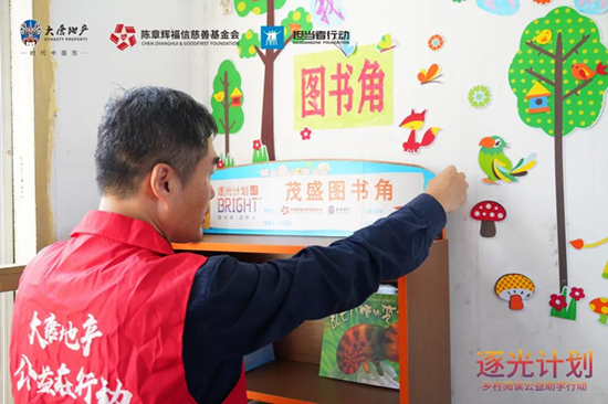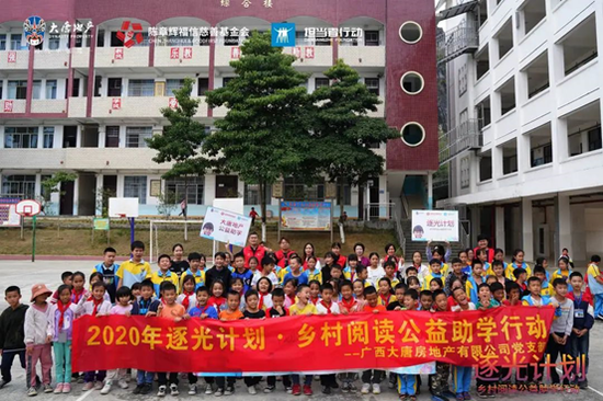 推进乡村阅读,释放知识光芒,2019年6月3日,由大唐地产、陈章辉福信慈善基金会、担当者行动教育基金会主办的“逐光计划Bright+”——隆安县“班班有图书角”捐赠活动,在广西南宁隆安县乔建镇龙弟村小学展开。在大唐地产的帮扶下,龙弟村班级图书角正式落地。