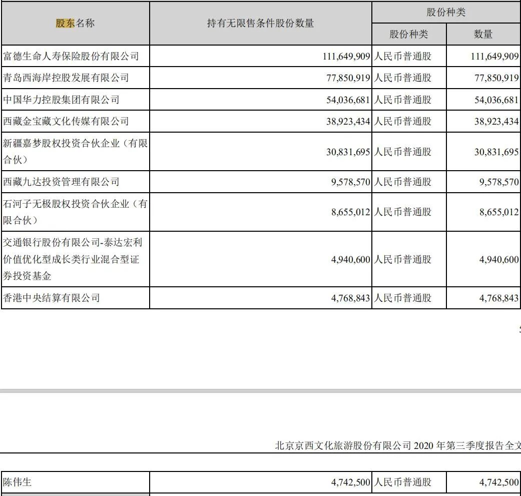 在机构投资者中,整个2020年,除了大股东富德人寿坚定持有、岿然不动之外,北京文化其它股东的动作较多。