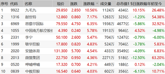 消费股有所回暖,其中,九毛九大涨11%,耐世特涨7%,思摩尔国际涨6%,南方航空、李宁、呷哺等集体走高。