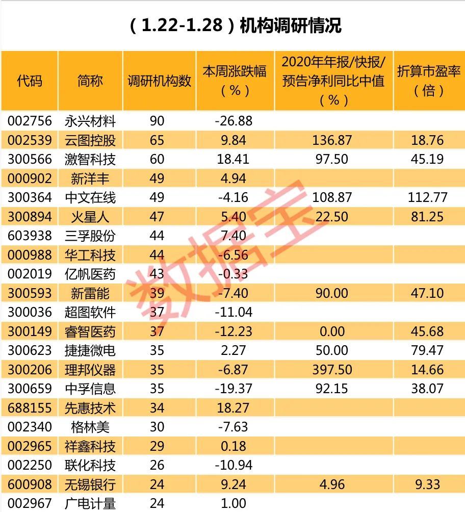 近一周机构调研个股数量有90多只,永兴材料成为调研机构数量最多的股票。