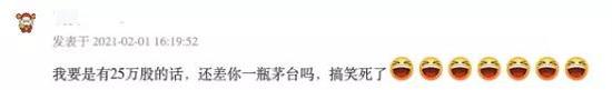 若按照最新收盘价32.56元/股来计算,持股25万股相当于814万人民币。消息一出,股吧里炸开了锅。不少网友调侃,“我有800万还在乎你瓶酒。”