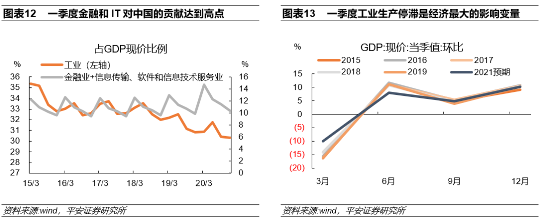 我们逐一考察国家统计局给出的季度分行业GDP,发现只有金融业和信息技术行业在历年一季度是全年高点,其他行业(包括批发零售、住宿餐饮、交通运输这些直观受益于春节假期的行业)一季度均为全年低点。金融和IT行业不仅不会受到就地过年的影响,还有可能从中受益;工业作为GDP中占比超30%的最大影响因子,会较为确定地受益于就地过年,实现快速复工复产,这将使得工业生产在一、二季度之间平滑;而对消费减少的负面冲击还需要观察。一言以蔽之,传统春节期间由于生产停滞,对经济大多数部门都有负面影响,而就地过年能够减少生产停滞,对经济的影响很可能是正面的,或者至少没有市场预期得带来那么大的冲击。