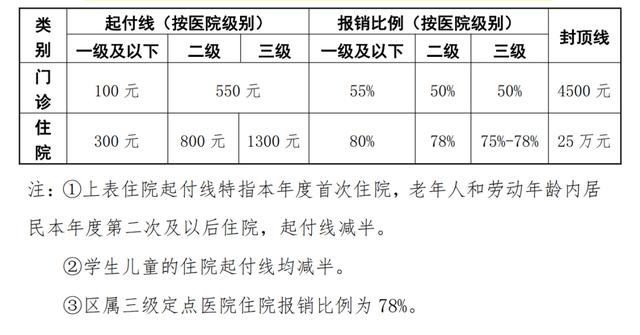 城乡居民医保费用报销比例一览表