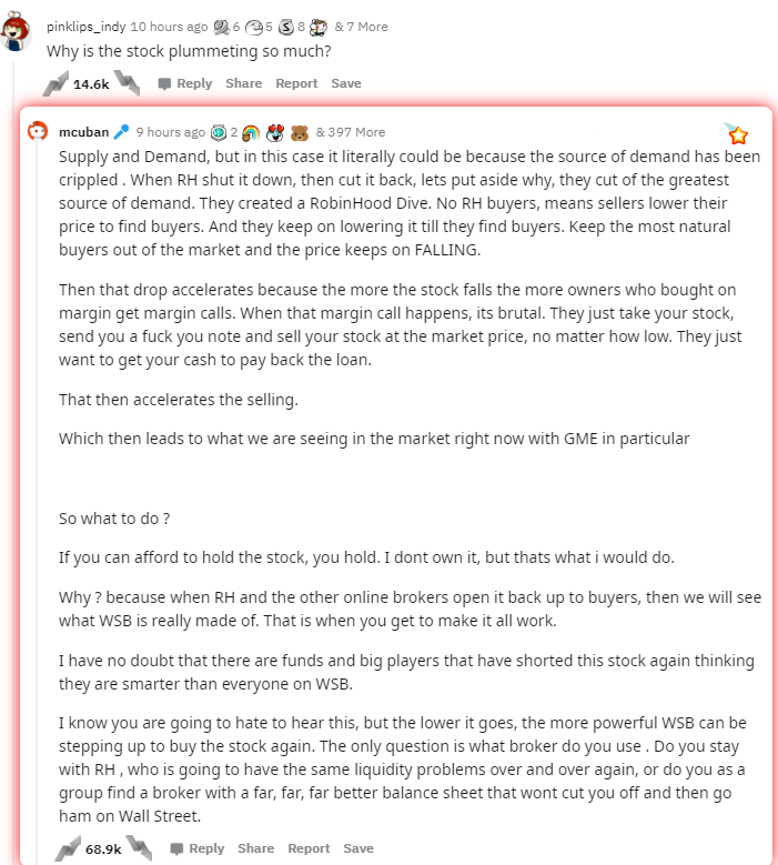 此外,亿万富文Mark Cuban也力挺散户持股。