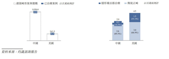 渗透率上,中国的隐形矫治市场目前仍处于起步阶段,相较于美国等发达国家而言,渗透率仍比较低。于2019年,在中国经治疗的2.9百万例错颌畸形病例中,仅10.5%采用隐形矫治器治疗,而在美国经治疗的4.5百万例错颌畸形病例中,33.1%采用隐形矫治器治疗,其中的差异进一步表明中国隐形矫治市场渗透率较低的事实。
