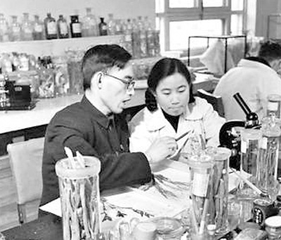 20世纪50年代,屠呦呦(左二)与老师楼之岑副教授一起做研究。