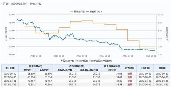 Wind数据显示,截至2020年9月30日,*ST宜生股东户数为58809户,较2020年6月末末减少了4589户。