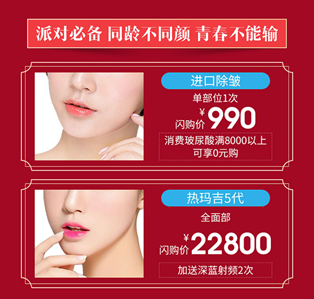 【速美嫩肤套餐】解除危“肌”预警,让你轻松悦享美丽新肌;【二代超皮秒套餐】这一“秒”,让你实力素颜不加“斑”;【水润水光】肌肤喝饱水,素颜也发光。2021,成美丽焦点,赴青春之约!
