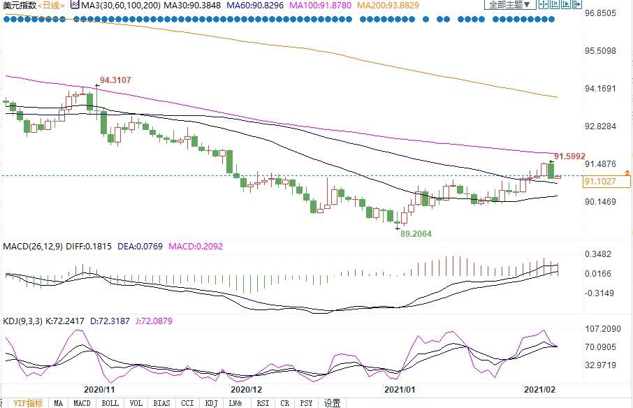 北京时间2月8日9:40,美元指数报91.11。