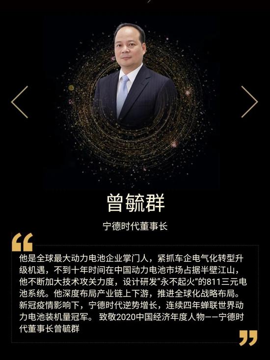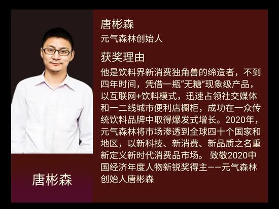 今年还评选了“2020中国经济年度人物新锐奖”,有4名企业家上榜,他们是: