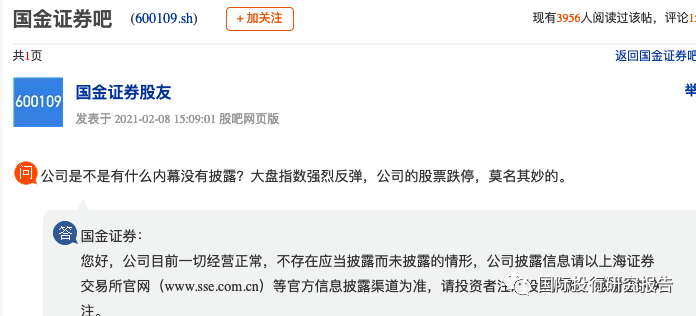 不幸言中, 国金证券 真的陪葬了!2月8日交易快结束的时候,国金证券突然跌停,韭菜们成为国金证券的陪葬品。