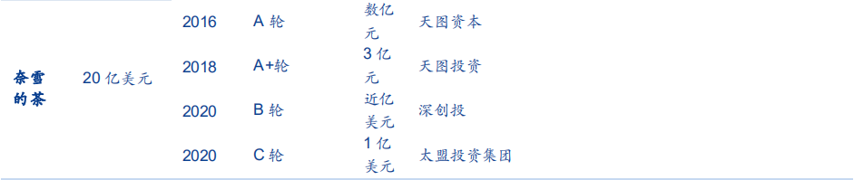 最新的相关消息显示,在2020年12月奈雪刚刚完成了C轮1亿多美元的融资,领投方为太盟投资集团,投后估值达到20亿美元。
