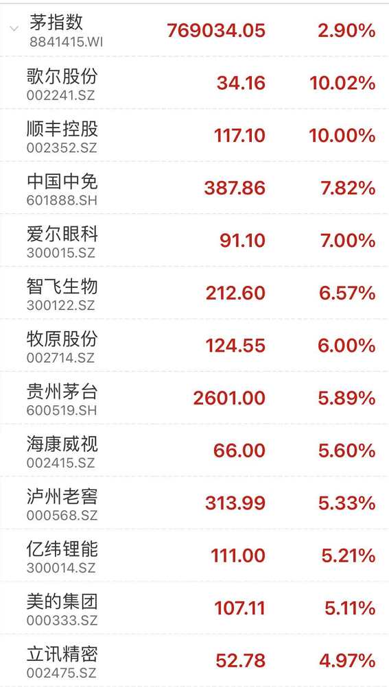 原标题:A股大红包!茅台大涨6%,中信高呼干到3000!“茅指数”狂飙,顺丰也涨停了!