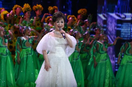 2011年央视春晚,李谷一演唱《难忘今宵》。/视觉中国